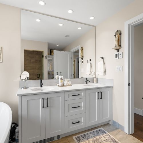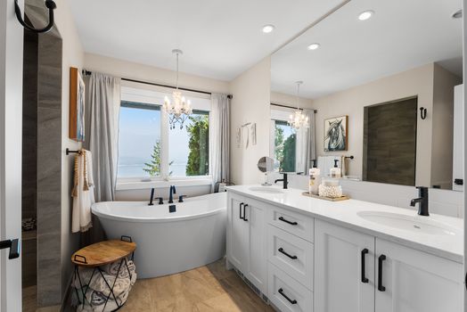• Master suite with fireplace, soaker tub, and walk-in shower