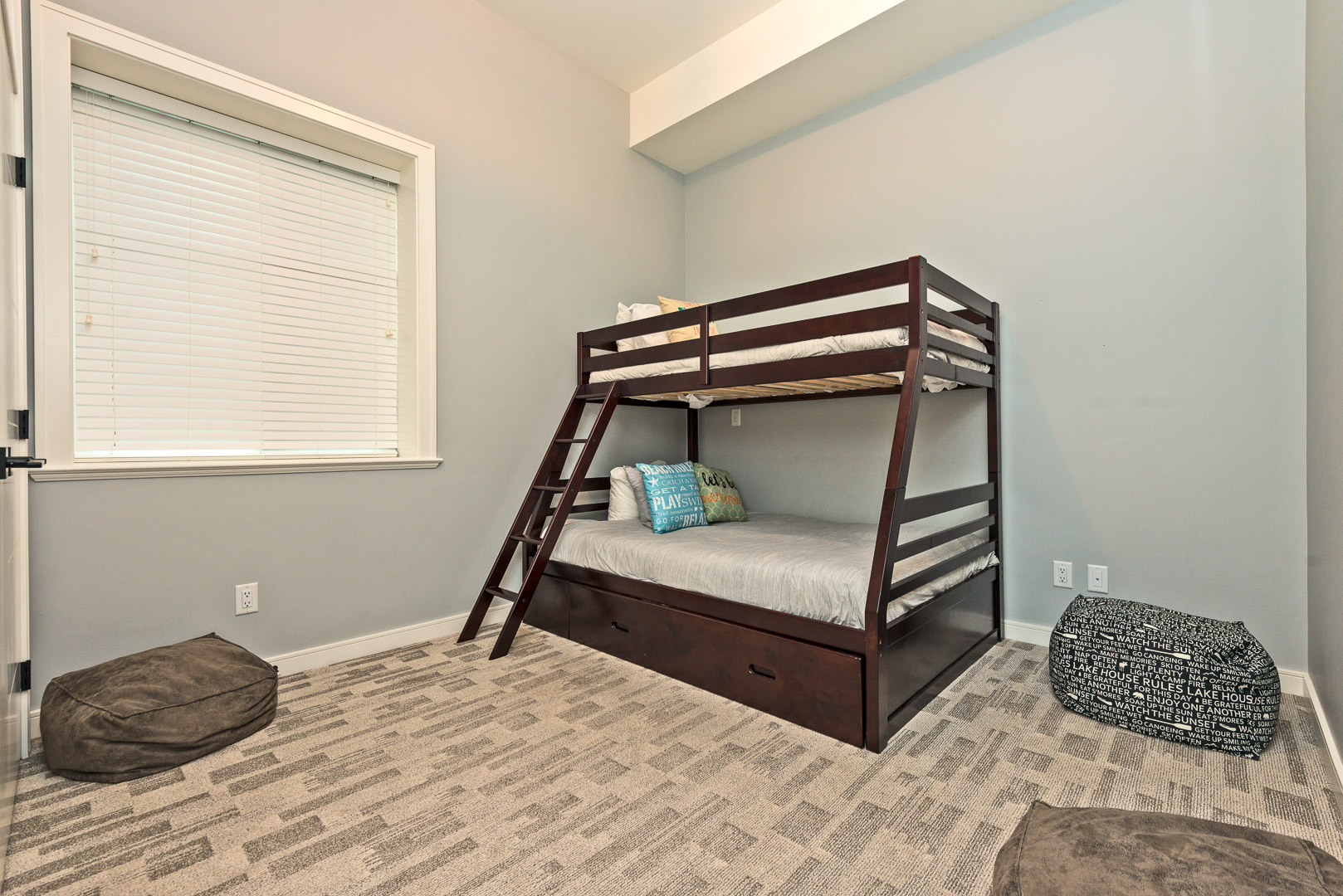 Kids’ bedroom (lower level): Twin + double bunk bed